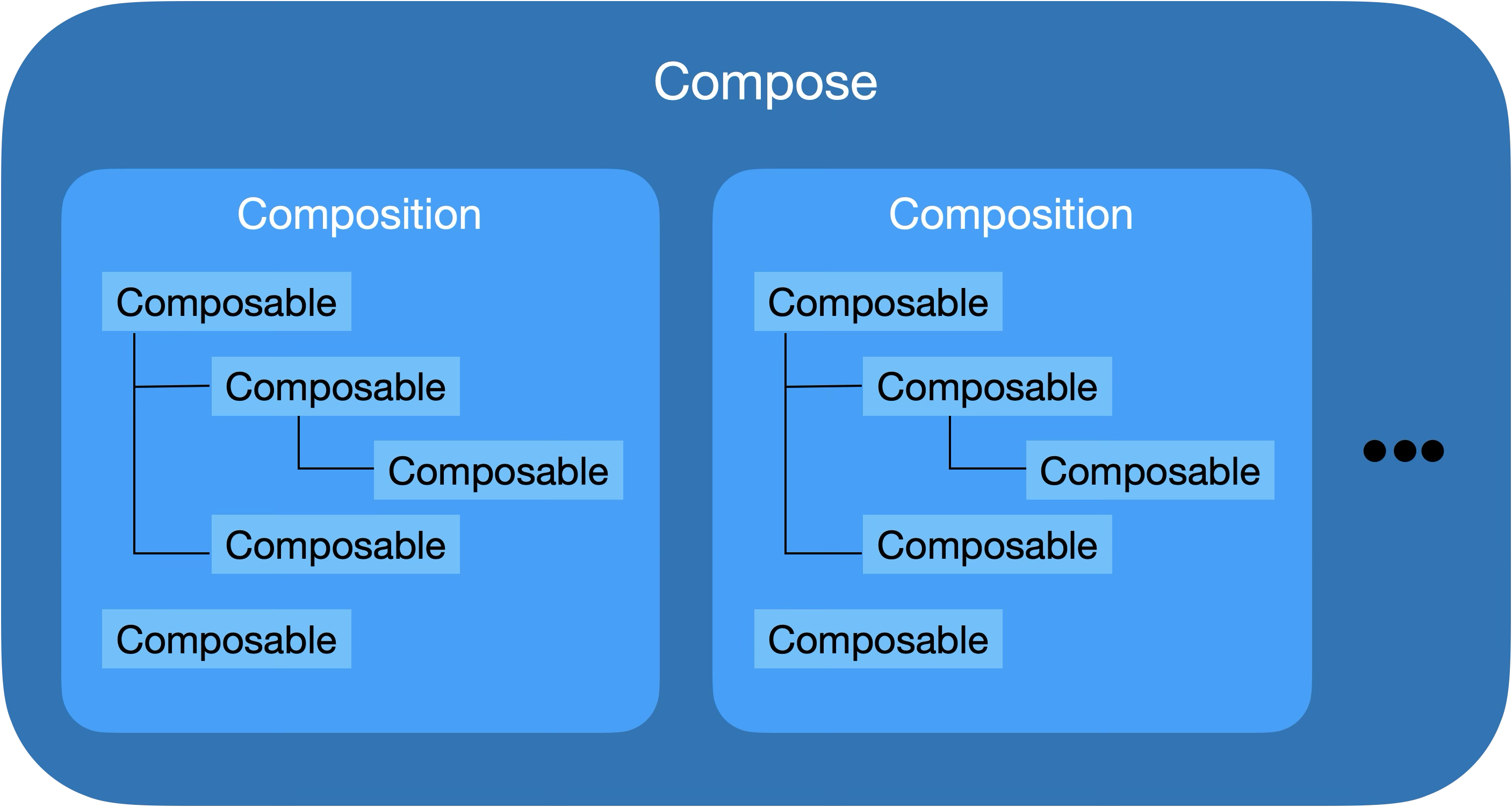 즉, Compose가 Composable을 실행하면 Composition이 만들어지고, 이 Composition들을 통합적으로 관리하는 시스템이 Compose이다.
