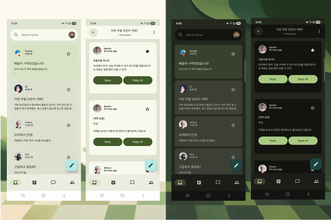 Material Design 3 문서를 기준으로 테마를 직접 구성해보려고 하면 생각보다 고려해야 할 요소가 많다.